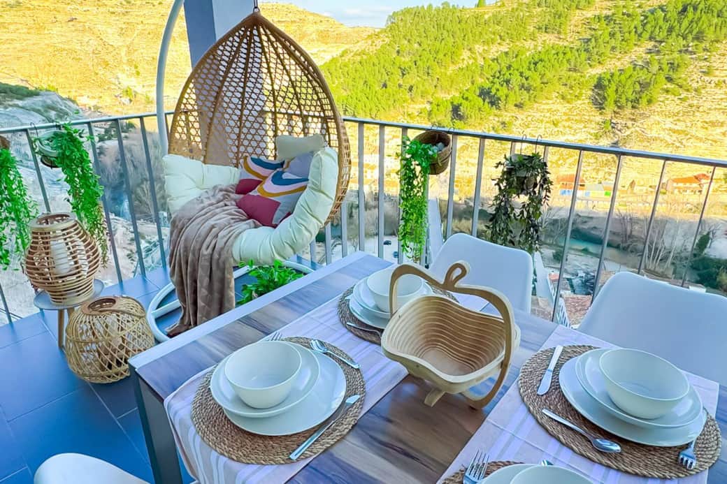 Desconecta de la rutina en este alojamiento único y relajante que te ofrece vistas privilegiadas del Valle del Júcar y del encantador pueblo de Alcalá. Grandes ventanales y amplias terrazas permiten disfrutar de la luz natural y panorámicas impresionantes. El salón-cocina, equipado para el confort, se abre al exterior, invitando a relajarse en un ambiente rústico y moderno. Es el punto ideal para explorar a pie, desde el río hasta los mejores restaurantes locales.