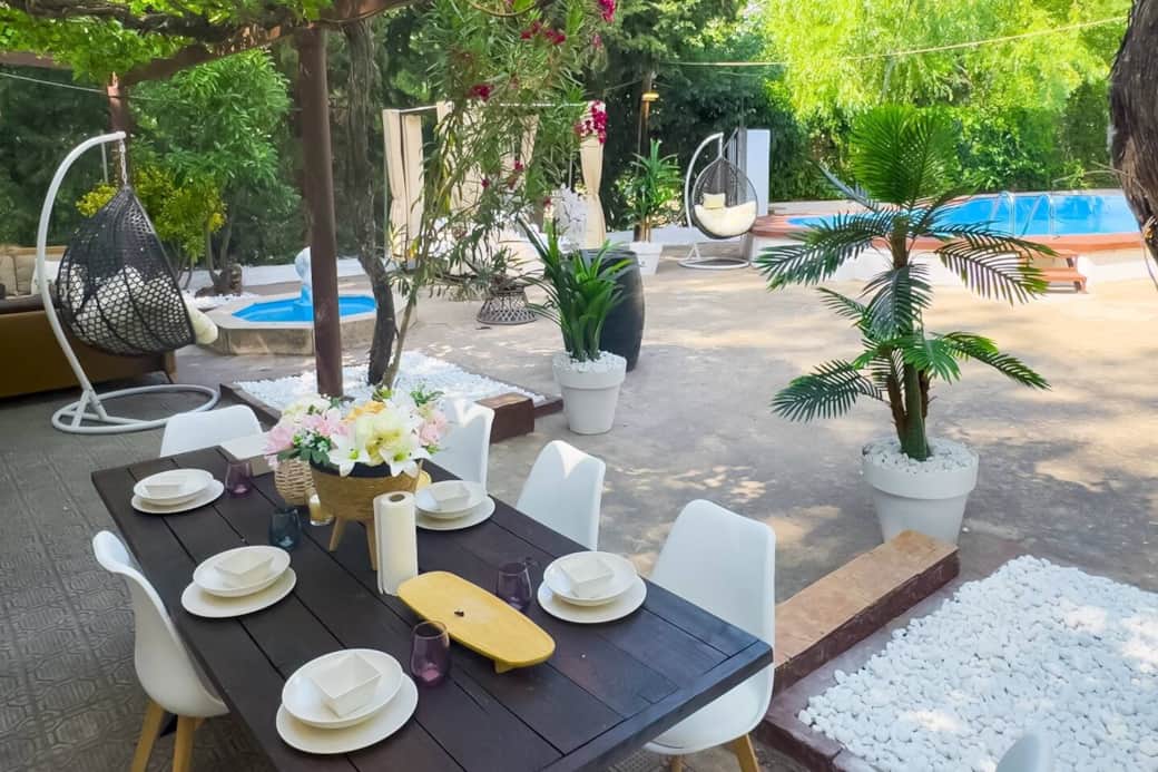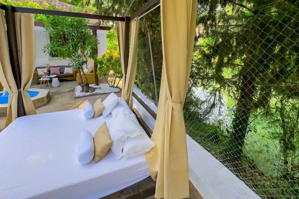 Situada a orillas del Río Júcar y rodeada de naturaleza, Casa Rural Rincón del Júcar es el lugar perfecto para desconectar. Disfruta de su amplio patio con piscina, barbacoa y salón con chimenea. Sin vecinos cerca, es ideal para grupos que buscan tranquilidad. Dispone de 4 habitaciones, 2 baños, cocina equipada, calefacción en toda la casa, y salón-comedor con sofás y televisión. Frente a la casa, cruzando el río, podrás acceder a la zona de playa privada del Restaurante La Playa de Jorquera.