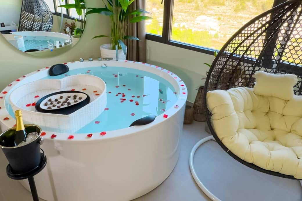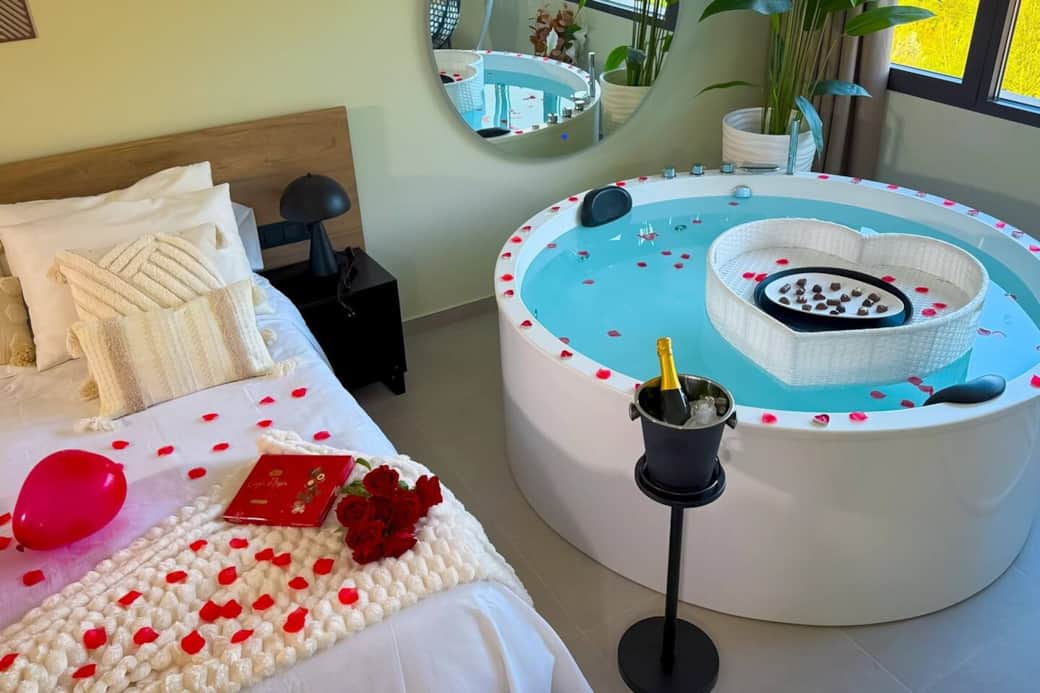 Un apartamento íntimo y encantador ubicado en un entorno mágico. Diseñada para parejas, ofrece una atmósfera acogedora y privada con todas las comodidades necesarias para una estancia inolvidable. Cuenta con cocina equipada, baño privado, cama de matrimonio y una decoración cuidada que inspira tranquilidad y conexión. Incluye jacuzzi y sillón tantra para una experiencia íntima, pensada para el bienestar y la conexión en pareja.
